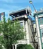 In 2002, the Cubs organization filed a lawsuit against the different facilities for copyright infringement. Since operators charge admission to use their amenities and sell licenses to view Major League Baseball, the Cubs asserted that the facilities were illegally using a copyrighted game and sued for royalties.[6] In 2004, 11 of the 13 roofs settled with the club out of court, agreeing to pay 17% of gross revenue in exchange for official endorsement.[7] The city also began investigating the structural integrity of the roofs, issuing citations to those in danger of collapse. With the Cubs and the neighbors reaching agreement, many of the facilities began to feature seating structures: some with bleachers, some with chair seats, and even one with a steel-girdered double deck of seats (see photo). The agreement was to last until 2023.[8]