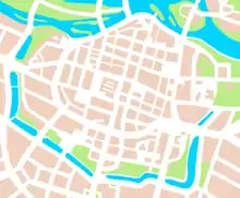 The oldest part of Wrocław is Ostrów Tumski, which has been inhabited at least since the 9th century (nowadays it is part of the Śródmieście district), and the accompanying estates on the right and left bank of the Oder River were soon established.[1] Already in the 12th century, there was a market square on the left bank of the river (in the area of today's Market Hall and Nankier Square). The areas north of today's Nankier Square and Uniwersytecka Street belonged to the prince's domain and were not part of the later founding city. The Piast dukes settled Jews there, founded monasteries, and had their own manors.