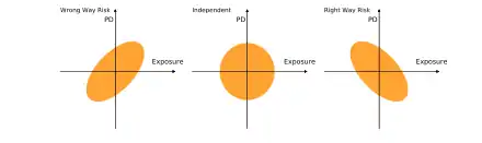 In Finance, a Wrong way risk (WWR) occurs when credit exposure to a counterparty is negatively correlated with the credit quality of that counterparty.[1] In other words, the more a party gains on a trade, the more likely it is for the counterparty to default. It is a source of concerns for banks and regulators, as it increases the overall counterparty credit risk.