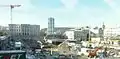 The B 7 was closed in July 2014 and the superstructure of the Döppersberg bridge was removed in August 2014. The pedestrian tunnel ending there was closed in January 2015. Instead, a steel replacement pedestrian bridge crossed the B-7 construction site. This involved a 300-metre-long walk around the station building. The B 7 was reopened to traffic in July 2017.[9]