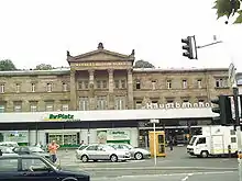 Wuppertal Hauptbahnhof (German for Wuppertal main station) is a railway station in the city of Wuppertal, just south of the Ruhr Area, in the German state of North Rhine-Westphalia. It is on the line between Düsseldorf/Cologne and Dortmund. The 1848 reception building is one of the oldest of its kind. The station was originally Elberfeld station and has been renamed several times since. Since 1992, it has been called Wuppertal Hauptbahnhof.[5] Wuppertal Hauptbahnhof is also the site of lost luggage operations for Deutsche Bahn.[6]