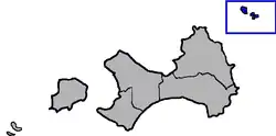 Wuqiu Township (blue) in Kinmen County (grey)