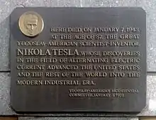 In his final years, the inventor Nikola Tesla lived in the hotel's room 3327 and died there penniless on January 7, 1943.[12]