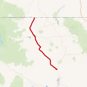 Wyoming Highway 120 zigzags northwest out of Cody, and at approximately 85.5 miles, it intersects Former Wyoming Highway 293, that used to serve oil fields, state lands, and the Park County airport. This route was turned back to county maintenance in the early 1990s.[2] The next major highway 120 encounters the eastern terminus of Wyoming Highway 296 (Chief Joseph Scenic Byway) at 101.01 miles into the route. After encountering WYO 296, Highway 120 turns to start heading in a north-northeast direction. At 113.83 miles, WYO 120 intersects the Former Wyoming Highway 292 (Clarks Fork Canyon Road). This route was also turned over to the county highway department for maintenance.[2] A half-mile after, Highway 120 intersects the northern terminus of Wyoming Highway 294 is intersected, which travels southeast to US 14A near Ralston.