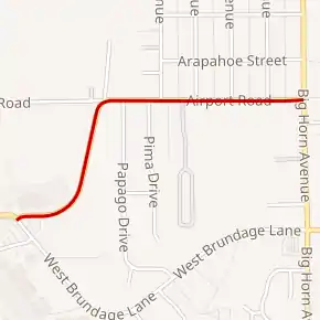 WYO 333 traveled north from the Sheridan County Airport and turned due east before coming to its terminus with WYO 332 at a t-intersection.[2]