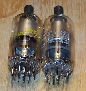 Any vacuum tube operating at several thousand volts or more can produce X-rays as an unwanted byproduct, raising safety issues.[12][13] The higher the voltage, the more penetrating the resulting radiation and the more the hazard. CRT displays, once common in color televisions and computer displays, operate at 3-40 kilovolts depending on size,[14] making them the main concern among household appliances. Historically, concern has focused less on the cathode ray tube, since its thick glass envelope is impregnated with several pounds of lead for shielding, than on high voltage (HV) rectifier and voltage regulator tubes inside earlier TVs. In the late 1960s it was found that a failure in the HV supply circuit of some General Electric TVs could leave excessive voltages on the regulator tube, causing it to emit X-rays. The models were recalled and the ensuing scandal caused the US agency responsible for regulating this hazard, the Center for Devices and Radiological Health of the Food and Drug Administration (FDA), to require that all TVs include circuits to prevent excessive voltages in the event of failure.[15] The hazard associated with excessive voltages was eliminated with the advent of all-solid-state TVs, which have no tubes other than the CRT. Since 1969, the FDA has limited TV X-ray emission to 0.5 mR (milliroentgen) per hour. With the switch from CRTs to other screen technologies starting in the 1990s, there are no vacuum tubes capable of emitting X-rays at all.