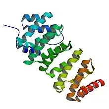 The C-terminal end of the protein has group-specific characteristics. In the third protein group, the coiled-coil domain is essential for dimerization in simple eukaryotes.[3] This is because simple eukaryotes such as yeast produce proteins in dimers. In first and second groups, the C-terminal domain is known to interact with transforming acidic coiled-coil protein 3 (TACC3), which transports the protein to the centrosomes during mitosis.[4]