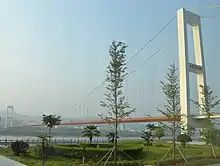The Xiling Yangtze River Bridge (simplified Chinese: 西陵长江大桥; traditional Chinese: 西陵長江大橋; pinyin: Xīlíng Chángjiāng Dàqiáo), is a suspension bridge over the Yangtze River, just a few kilometers downstream from the Three Gorges Dam. The bridge is located within Yiling District of the prefecture-level city of Yichang (Hubei Province of China), connecting the towns of Taipingxi and Letianxi (on the left, northern bank of the river) with Sandouping (on the right, southern bank).