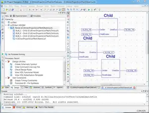 The Processes hierarchy describes the operations that the ISE will perform on the currently active module.[3] The hierarchy includes compilation functions, their dependency functions, and other utilities.[3] The window also denotes issues or errors that arise with each function.[3]