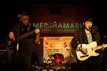 Rather than find a replacement for Qureshi, the xx continued to tour as a smaller line-up of guitar, bass and percussion. They also reduced their already minimalist arrangements for songs in concert, although Sim jokingly said Smith "needs another few arms so he can work everything" after Qureshi's departure.[74] In their shows, Croft abandoned playing solos and chords in favour of less defined figures and motifs, while Smith performed beats and ambient sounds from his synth pad as an accompaniment to Croft and Sim's playing.[1] Because their style had been suited to the small venues they first played, the xx focused more on the production value of their concerts and performing for larger audiences while on tour.[18] They dressed in dark clothing and illuminated the stage with light boxes displaying their x-shaped, white-on-black logo.[75]