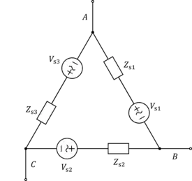During the analysis of balanced three-phase power systems, usually an equivalent per-phase (or single-phase) circuit is analyzed instead due to its simplicity. For that, equivalent wye connections are used for generators, transformers, loads and motors. The stator windings of a practical delta-connected three-phase generator, shown in the following figure, can be converted to an equivalent wye-connected generator, using the six following formulas:
