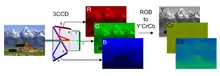 YCbCr, Y′CbCr, or Y Pb/Cb Pr/Cr, also written as YCBCR or Y′CBCR, is a family of color spaces used as a part of the color image pipeline in video and digital photography systems. Y′ is the luma component and CB and CR are the blue-difference and red-difference chroma components. Y′ (with prime) is distinguished from Y, which is luminance, meaning that light intensity is nonlinearly encoded based on gamma corrected RGB primaries.