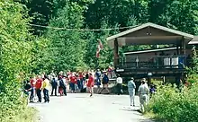 Camp Wanakita was designed as a replacement for Erie Heights on Lake Erie which was itself a replacement for Camp Tekahoinwake on the Grand River. Both of these locations were considered too developed so George Jones and co-workers from the YMCA chose Koshlong Lake as the site for Wanakita in 1953. The name "Wanakita" was chosen by Keith Smith. Wanakita began as an all-boys camp and during its early years, the nurse was the only woman who was regularly on the camp grounds. In 1969, the camp started offering the same opportunities to girls.[5] Since 1991, Wanakita has partnered with Hemophilia Ontario and offered instruction on the proper use of clotting agents.[6][7]