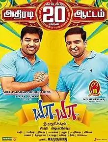 Ya Ya is a 2013 Indian Tamil comedy film written and directed by debutant I. Rajasekaran, who was an assistant to Director M. Rajesh.[1] The film features Shiva, Santhanam, Sandhya and Dhansika in the lead roles.[2] It received 'U/A' certificate from Central Board of Film Certification.[3] The film received positive reviews from critics, but become a decent success at the box office.[4][5][6][7][8]