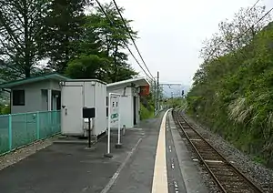The station consists of a single side platform serving traffic in both directions. The station is unattended.
