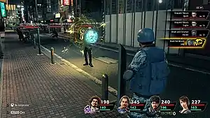 A major departure from previous Yakuza games is the battle system. Instead of the real-time beat 'em up mechanics of previous games, Yakuza: Like a Dragon features a real-time turn-based RPG (which was the result of an April Fools joke back in 2019 that was so well received that they retooled the combat from its former real-time beat 'em up mechanics)[1] type combat, with a four-person battle team. However, unlike typical turn-based RPGs, characters may use nearby surrounding items such as bicycles to attack enemies (if the items are near the enemies) or may kick surrounding items to their target if there is an interactive item in the environment on the way to the enemy, an aspect that returns from the previous Yakuza games. Players can also call on various party assists to strengthen the party or defeat enemies, with more assists added as the story progresses or through the completion of sub-stories. Players can still continue exploring the world after completing the game. A new game plus mode with additional difficulty settings exclusive to this mode was released as paid downloadable content for the Japanese version of the game,[2] but it comes as a standard feature in the Western release.