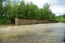 In 1910, the Yamhill river was described as "a limpid stream of shallows and deeps in Summer, a brawling torrent in Winter."[6] In 1874, the Yamhill was examined by the engineering department of the U.S. army, which found that the river would vary from a shallow chain of pools in the summer to a "river of great power and strength" whose waterlines along the banks showed a rise, sometimes, of over 60 feet (18 m) during winter and spring floods.[7]
