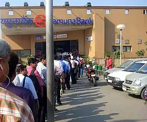 The Yamuna Bank Metro Station is located on the Blue Line of the Delhi Metro.[1] This station is a transfer point between the Noida and Vaishali branches of the Blue Line. Cross-platform transfer is provided in the same direction of travel through two island platforms. Free School Under The Bridge is situated close to the station.[2]