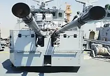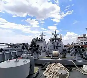 The ships are also equipped with two triple torpedo launchers for Shyena torpedoes, two RBU-1200 ASW rocket launchers and two LDC (large depth charge) throwers and naval mines as the anti-submarine weapons (ASW).[2]