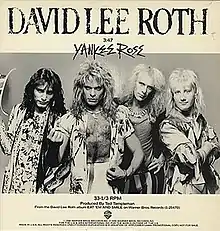 "Yankee Rose" is a song recorded by David Lee Roth, featuring the prominent electric guitar of its co-writer, virtuoso Steve Vai. Roth's first single on his 1986 first full-length solo LP Eat 'Em and Smile, with lyrical allusions to the American National Anthem and Irving Berlin's God Bless America, as well as July 4th, independence, flag unfurling, rocket flare, fire crackers, apple pie, and her torch light, it was recorded as a tribute to the Statue of Liberty,[4] as the statue was completing a major renovation for the 100th anniversary of its dedication in 1886: