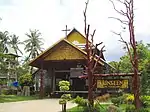 The seal of the province shows two mythical lions, called singh, facing the chedi Prathat Anon, in the temple Wat Maha That in the city of Yasothon. In the legendary account of the founding of the city, a lion came out of the forest when the site was chosen; hence the city was called Ban Singh Tha (Thai: บ้านสิงห์ท่า), Home (of) Imposing Lion. At the bottom of the seal is a lotus flower (Nymphaea lotus), as the lotus is both the provincial flower of the province and of Ubon Ratchathani province, of which Yasothon was part until 1972.[6] The provincial tree is Anisoptera costata.