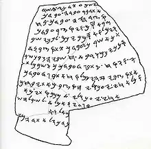 The Yavne-Yam ostracon, also known as the Mesad Hashavyahu ostracon, is an ostracon containing a written appeal by a field worker to the fortress's governor regarding the confiscation of his cloak, which the writer considers to have been unjust.[1][3] The artefact was found in 1960 by Joseph Naveh at Mesad Hashavyahu, near Yavne-Yam. The inscription is known as KAI 200.