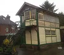 | Yaxham | - | Great Eastern Railway | The station was originally provided with a signal box to the north of the station. The signal box survives in private ownership, although missing its 26 lever McKenzie & Holland lever frame and is the only original signal box remaining on the route. The box is currently used by the Mid-Norfolk Railway as a crossing cabin. | ![]() |