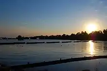 Yeadon Tarn (also known as Yeadon Dam) is located between High Street and the airport runway. During the Second World War it was drained to prevent enemy aircraft using its reflection as a landmark to identify the nearby Avro factory.[21] The tarn is used for sailing and fishing. Mallard ducks, swans and a sizable population of Canada geese can be found at the tarn. Adjacent to the tarn [22] is a park of 17 acres (6.9 ha) with a BMX bike track, known as Tarnfield Park.[23]