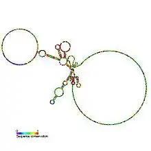 There are significant differences in sequence and secondary structure between metazoan and yeast U1 snRNAs, the latter being much longer (568 nucleotides as compared to 164 nucleotides in human). Nevertheless, secondary structure predictions suggest that all U1 snRNAs share a 'common core' consisting of helices I, II, the proximal region of III, and IV.[1][2] The secondary structure model shows the structure prediction for the larger yeast sequences.