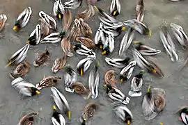 ![]() Behavior of a flock of mallard ducks when feeding visitors to the park |