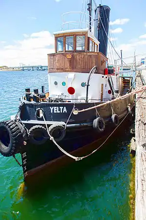Yelta is a steam tug which operated in the Australian state of South Australia from 1949 to 1976 within both the Port River and the waters of Gulf St Vincent immediately adjoining the river's mouth. After being laid up for about nine years, she was purchased in 1985 by the Government of South Australia for addition to the collection of the South Australian Maritime Museum as a museum ship. As of 1985, she was considered to be the only remaining steam-powered tug operating within Australian waters.