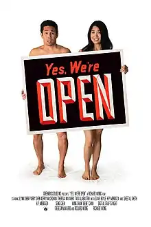 Yes, We're Open is a 2012 American independent film directed by Richard Wong and written by H.P. Mendoza, the first collaboration between Wong and Mendoza since their 2006 debut film, Colma: The Musical. The film premiered March 11, 2012 at the San Francisco International Asian American Film Festival. After a year of touring the film festival circuit and winning Best Screenplay at the Los Angeles Asian Pacific Film Festival, Yes, We're Open was released on home video on October 12, 2012.