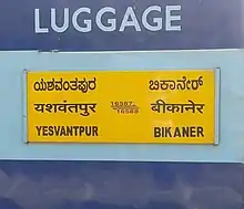 The 16587 / 16588 Yesvantpur–Bikaner Express is an Express train belonging to Indian Railways South Western Railway zone that runs between Yesvantpur Junction and Bikaner Junction in India.