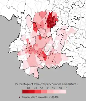 | China (Yunnan, Sichuan, Guizhou, Guangxi): 9 million (2010) Vietnam: 4,827 (2019)[1] Thailand and Laos: 2,203 (2015) | |