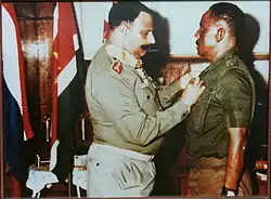 In subsequent years, there was much unrest in the Surinamese army, particularly in relation to working conditions. In 1980, non-commissioned officers founded a new Surinamese military union: the BoMiKa (Association of Military Framework). The establishment of the BoMiKa was unacceptable to Elstak and Prime Minister Henck Arron. The three board members were put in prison. As a result, on 25 February 1980, sixteen sergeants led by Dési Bouterse overthrew the Arron government with a violent military coup d'état, now known as the Sergeants Coup. Colonel Elstak was deposed by the coup perpetrators as commander and replaced by Bouterse.[3]