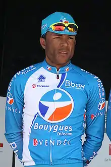 Yohann Gène (born 25 June 1981 in Pointe-à-Pitre, Guadeloupe) is a French former professional road bicycle racer, who competed professionally between 2005 and 2019, entirely for Bouygues Télécom and its later iterations.[3] He was the first cyclist of Afro-Caribbean and Sub-Saharan African descent to ever compete in the Tour de France.[4]
