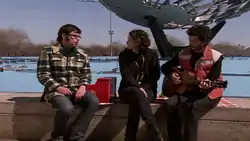 "Pencils in the Wind"[2][3] (also known as "Sellotape") [4] is a heartfelt ode to the similarities between love and adhesive tape — generically referred to as Sellotape in many countries including New Zealand. It begins with Bret and Jemaine singing separately and in different locations — using split screen — and ends with most of the cast (Coco, Mel and Dave) and a large chorus of extras singing together in a night-time street scene, and concludes with Bret and Jemaine rising from the ground, in a similar manner to the end of Grease and the music video for "It's Oh So Quiet" by Björk. The long coda, with scat singing, is of a similar style to Hey Jude.