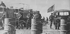 Despite fierce resistance, the Israeli reserve brigade garrisoning the Bar-Lev forts was overwhelmed. According to Shazly, within six hours, fifteen strongpoints had been captured as Egyptian forces advanced several kilometres into the Sinai. Shazly's account was disputed by Kenneth Pollack, who noted that for the most part, the forts only fell to repeated assaults by superior forces or prolonged sieges over many days.[153] The northernmost fortification of the Bar Lev Line, code-named 'Fort Budapest', withstood repeated assaults and remained in Israeli hands throughout the war. Once the bridges were laid, additional infantry with the remaining portable and recoilless anti-tank weapons began to cross the canal, while the first Egyptian tanks started to cross at 20:30.[154]
