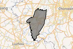 Yongchuan (Chinese: 永川; pinyin: Yǒngchuān Qū) is a district of Chongqing, China, located by the north side of upper reach of Yangtze River, with a history of 1200 years. Yongchuan borders Sichuan province to the southwest and is 63 km (39 mi) away from Yuzhong District of central Chongqing and 276 km (171 mi) from Chengdu.