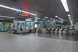 | B1 | Concourse | Lobby, information desk, automatic ticket dispensing machines, one-way faregates, Restrooms(East side, outside fare zone near exit 4) |
