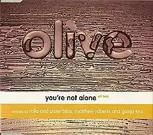 "You're Not Alone" is a song written by Tim Kellett and Robin Taylor-Firth and performed by Olive on the 1996 album Extra Virgin. First released as a single in August 1996, it found greater success in 1997 in a remixed version, reaching number one on the UK Singles Chart that May. The song has been covered by a number of artists, most notably by German trance DJ and producer ATB in 2002, Danish singer-songwriter Mads Langer in 2009, in 2017 by Scotty Boy and Lizzie Curious, and reworked by SaberZ and Zanny Duko in 2020 under the name, "Open Your Mind".