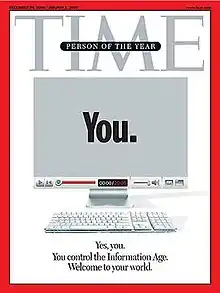 Similar media awards had already recognized the growing significance of online community and user-generated content: "You!" were ranked first in Business 2.0's list of "50 people who matter now" in July 2006;[7] while ABC News had listed bloggers as "People of the Year" for 2006.[8]