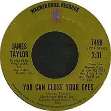 Richie Havens covered "You Can Close Your Eyes" on his 1976 album The End of the Beginning.[21] Maureen McGovern covered "You Can Close Your Eyes" as the closing track of her 1992 album Baby I'm Yours.[22] Sheryl Crow covered it on her 2003 album Artist's Choice: Sheryl Crow.[23] The a cappella group the King's Singers covered the song on their 2008 album Simple Gifts[24] and The Young'uns covered it a cappella on their 2012 album When Our Grandfathers Said No.[25]