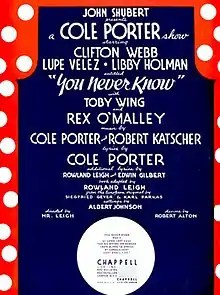 You Never Know is a musical with a book by Rowland Leigh, adapted from the original European play By Candlelight, by Siegfried Geyer and Karl Farkas, with music by Cole Porter and Robert Katscher, lyrics by Cole Porter, additional lyrics by Leigh and Edwin Gilbert, directed by Leigh, and songs by others.