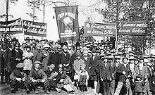 Prior to the founding of SKNL, the SKP worked through public organizations such as the Socialist Youth League of Finland (banned 1923) and the Socialist Youth League. An effective underground youth organization was not established while it was still possible to work publicly.[1] Gradually, young members of the SKP began setting up secret party cells of their own.[2][3] In 1923 the Communist Youth International proposed the formation of a communist youth league in Finland. Activity towards the build-up of the organization intensified and in August 1924, the SKP began publishing Nuori Kommunisti ('Young Communist'). In early 1925 an organiser was hired to build the movement and the SKNL was thus founded. In May, the league had 250 members.[4][5]