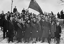 The first conference of SKNL was held in Moscow, August 1927. At that time, the organization had 94 cells and 358 members.[8] The second conference, which was attended by eight delegates, took place in connection with the congress of the Communist Youth International in August 1928. By then the membership had reached approximately 600, out of whom 20% were women.[9]