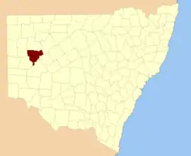 Young County is one of the 141 Cadastral divisions of New South Wales. It includes the area to the west of Wilcannia. The Darling River is the south-eastern boundary.