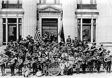 Mutual Improvement Association Scouts in front of the Church Administration Building, c. 1917