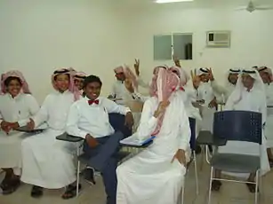 Curriculum that is being taught to students in Saudi Arabia has a religious base, specifically Islamic teachings.[4] It emphasizes memorization, rather than solving the problem.[4] Because employers do not always utilize these skills in their business, it is increasingly difficult for young Saudis to find a job.[5] In response to the educational shortcomings, King Abdullah established his Public Education Development Project, which was launched in 2007. This was an approximately $3 billion program designed to improve public education.[17] Some of the goals that this project has for improving youth education are "improving the educational environment and preparing to utilize information and communication technology (ICT) in education to stimulate learning. This is in order to achieve a higher level of efficiency in acquiring information and training, as well as strengthening personal and creative capabilities, developing skills and hobbies, satisfying psychological needs of students, and strengthening ideas as well as national and social relations through extra-curricular activities of various kinds".[17] The Public Education Development Project and King Abdullah's scholarship seeks to help students develop problem solving skills as well as a comprehensive world view by allowing students to study in other countries of the world.[5]
