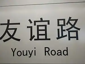 Youyi Road station is a subway station in Tianxin District, Changsha, Hunan, China, operated by the Changsha subway operator Changsha Metro.[1] It entered revenue service on June 28, 2016.